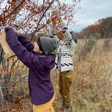 October 29, I spent a couple of hours foraging for invasive plants along the trail. Claudia Knab-Vispo and Anna Duhon from the Farmscape Ecology Program helped me with accurate plant identification, suggestions, digging and picking. I already learned so much in this one trip.